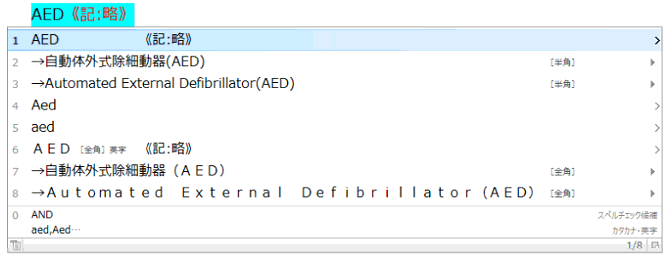 入力・変換中の表記の説明が記者ハンドブック電子辞典にある場合は、確定する前の状態で[End]*1キーを押すと、その内容を確認することができます。