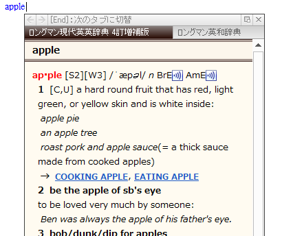 ※上記の画面は、ATOK 2011とロングマン現代英英辞典 4訂増補版を例として使用しています。